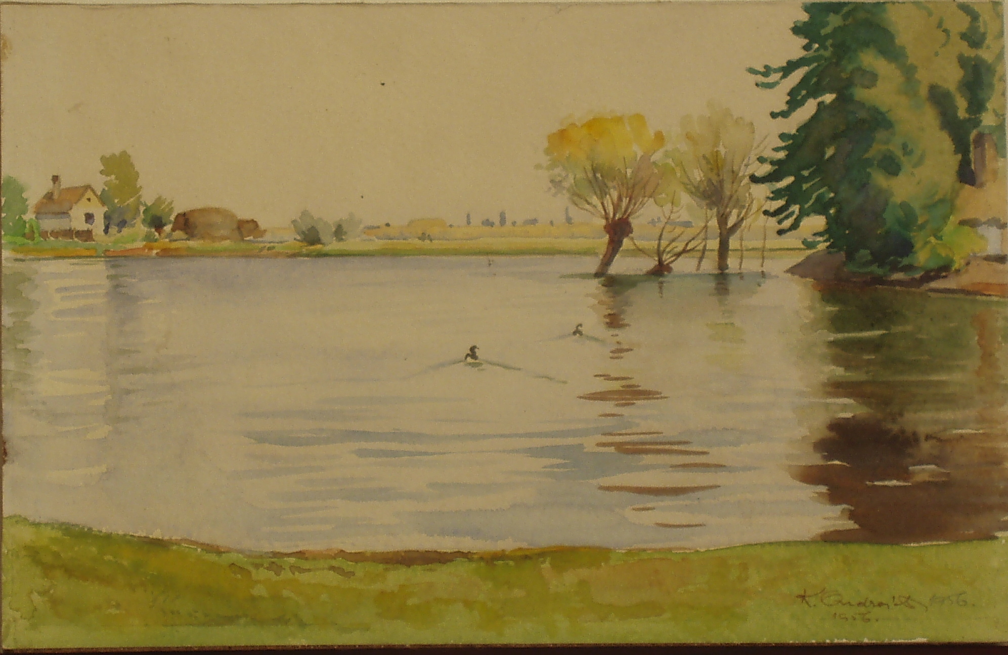 Sign. Ondreička, Dunajské rameno, 20x30cm, akvarel